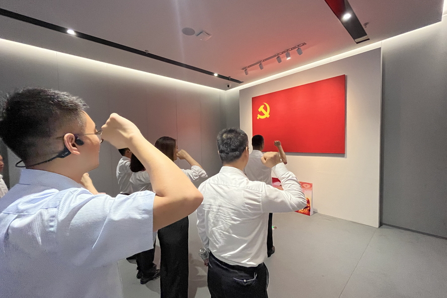 會后黨員們集體參觀了紅色文化體驗(yàn)館,在講解員的帶領(lǐng)下,黨員們穿過時(shí)空隧道,重溫建黨至今的重要?dú)v史節(jié)點(diǎn);通過展館內(nèi)多種先進(jìn)數(shù)字技術(shù)讓黨員們沉浸式體驗(yàn)了飛奪瀘定橋、爬雪山過草地、夜襲陽明堡等歷史場景,切身感受了當(dāng)年戰(zhàn)爭環(huán)境的艱辛及戰(zhàn)士們英勇無畏的革命精神;在5D影院,黨員們“遨游俯瞰”了黨的十八大以來我們在載人航天、橋梁基建、生態(tài)環(huán)境保護(hù)方面取得的重要成就;最后在初心講堂前,黨員們重溫了入黨誓詞,進(jìn)一步強(qiáng)化了黨員理想信念。